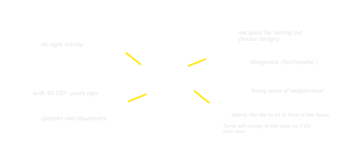 I began investigating the daily life of the elderly and interviewed them to understand better what it feels like to live here and what they want to change if they can rebuild this site. These resident interviews greatly influenced the direction of the design.